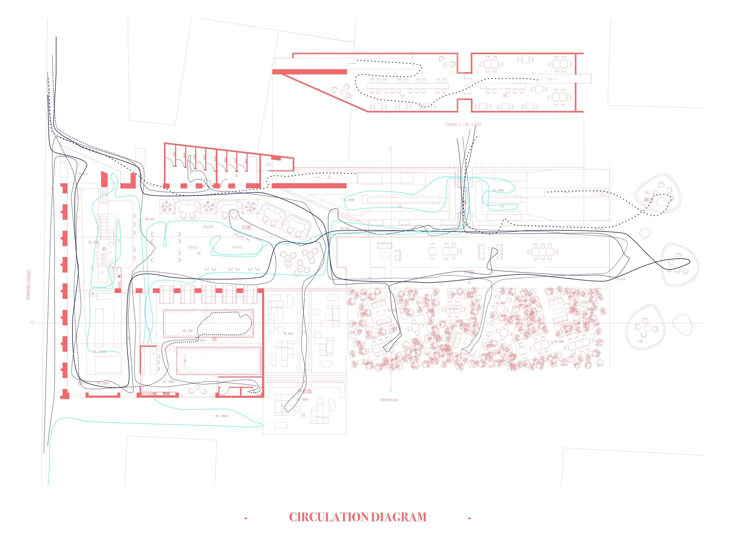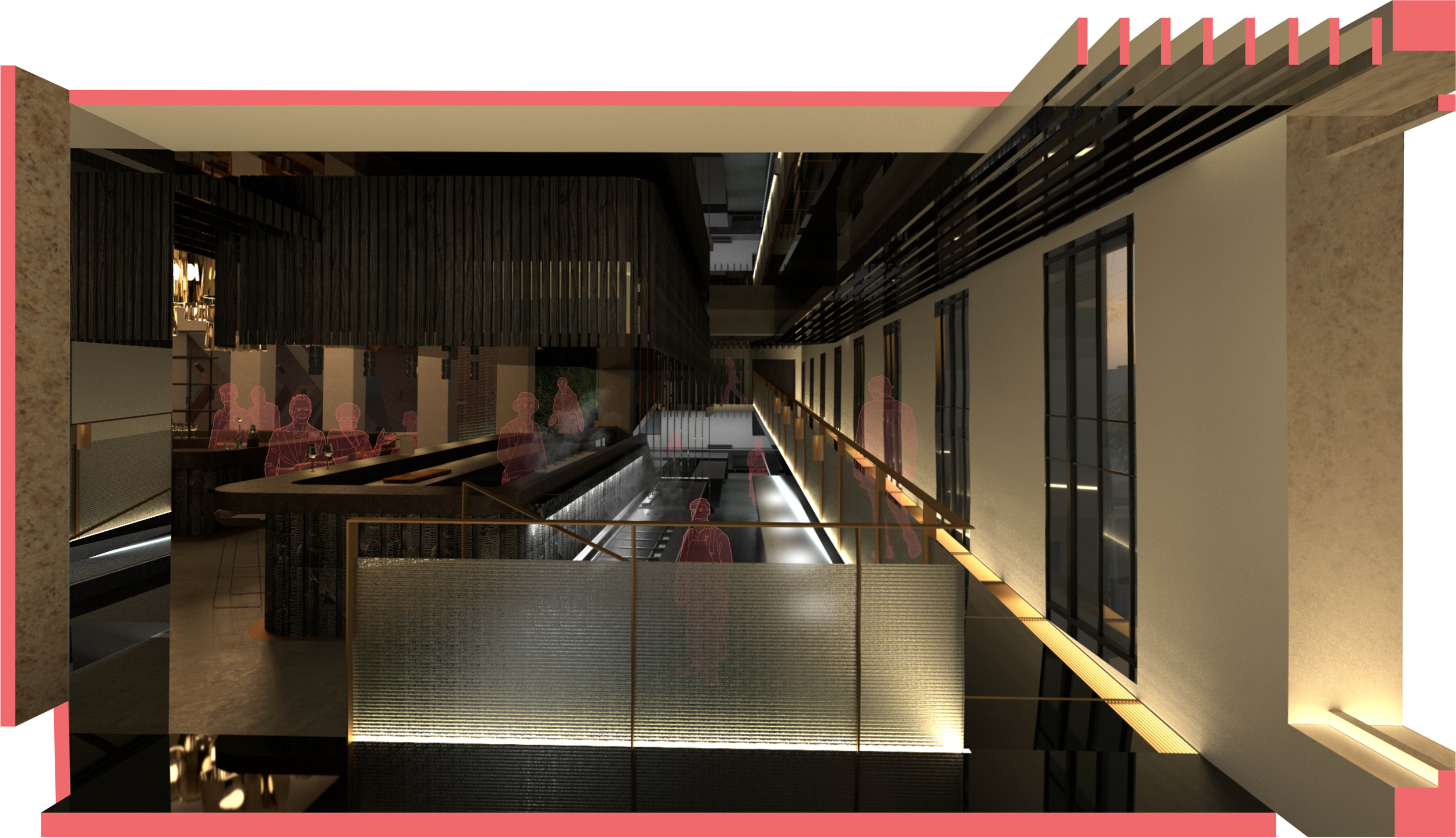 In western society restaurants often the dining experience is lacking in sensory invigoration. Therefore, the dining experience is dissatisfying, and leads to countless social issues. This design thesis primarily investigates the connection between multi-sensory triggers and hospitality satisfaction in architecture. Consideration of the principles of Japanese cuisine has informed this investigation, and the resultant toolkit and architecture exemplifies the link between the two subject areas. It can be argued that hospitality satisfaction is not a necessity in life, but the advancement of social and cultural understanding leads to a coherence between the physical need for nutrition, and the want for gastronomic experiences. The output of this thesis shows a correlation between; materiality, colour, lighting, and spatial form, in creating desired emotive spaces. A series of material and precedent studies informed this investigation, and a resultant toolkit was created. Research on the Japanese cuisine and culture was undertaken to determine how another society successfully achieves sensory invigoration of the dining experience. This toolkit in combination with the other areas of research creates an epistemological outline which was then applied to a representative restaurant, in order to create a series of predetermined sensory responses. The programmatic form is a restaurant, bar, bakery and culinary school, all fine tuned on a sensory level to augment the satisfaction of a dining experience. It is implied in conclusion, that there are multiple ways to indicate a specific emotion; through the tailoring of criteria (materiality, colour, lighting, and spatial form) in architectural representation.